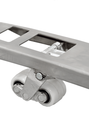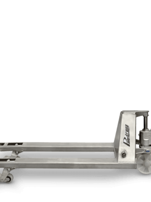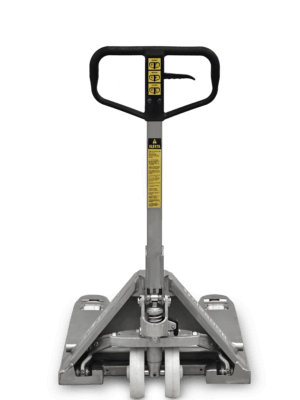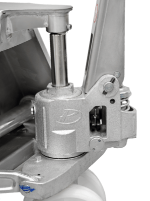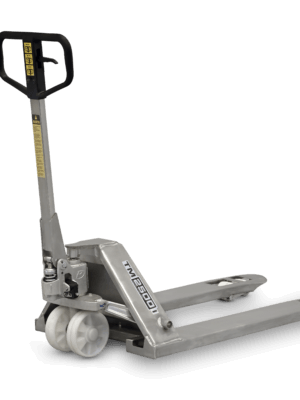 O modelo TM2500 IC RTN 530 tem o chassi e a alavanca de comando em aço inoxidável e o restante dos componentes em aço carbono zincado. Possui capacidade de carga de até 2.500 kg. Tem rodas de carga duplas em nylon em cada extremidade do garfo.